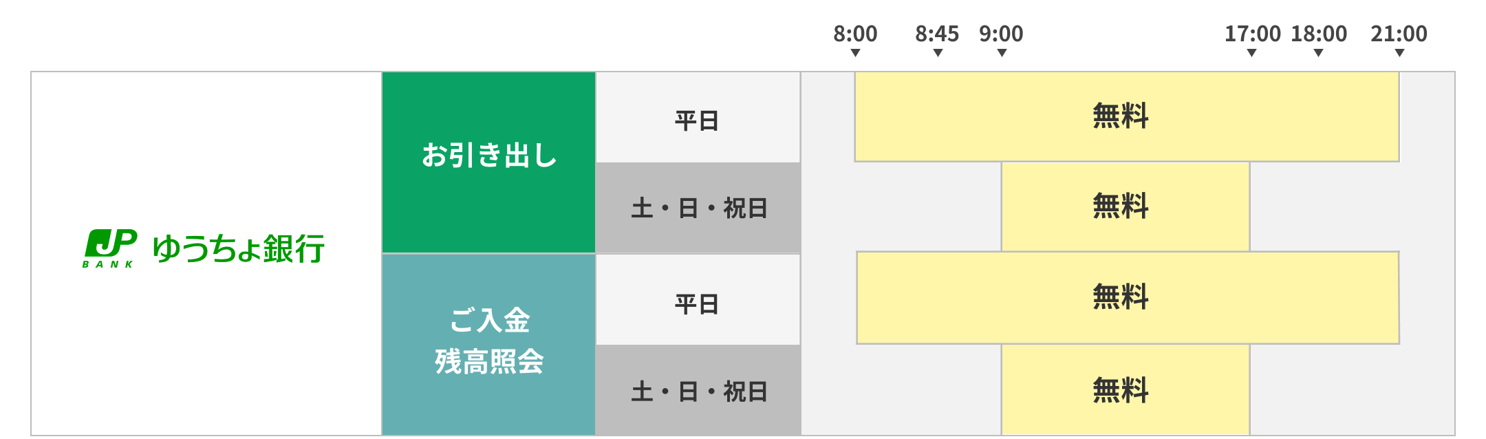 - ATM稼働時間はATMごとに異なります。
