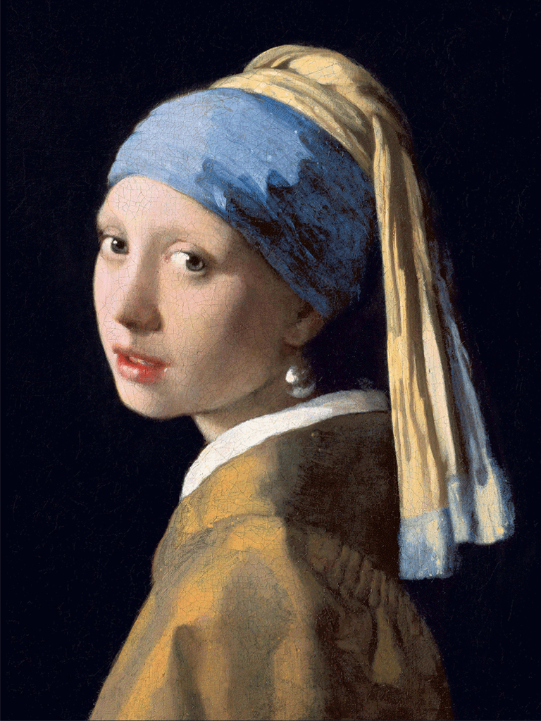 - 動き出す名画シリーズの中でも特におすすめする「ウインク・フェルメール」は、真珠の耳飾りとターバンが揺れ、少女がほほえみ、ウインクをします。